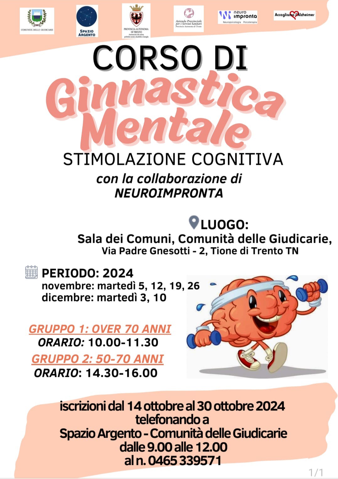Corso di ginnastica mentale - stimolazione cognitiva in collaborazione con Neuroimpronta