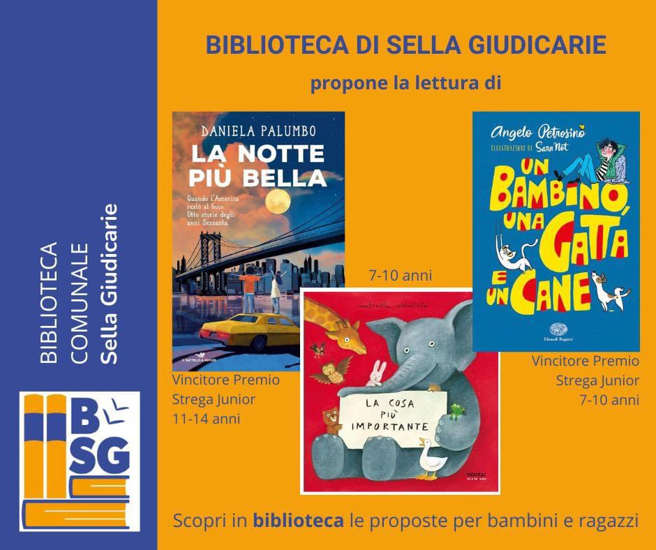 La Biblioteca di Sella Giudicarie propone la lettura di LIBRI PER BAMBINI E RAGAZZILa Cosa più importantedi Antonella Abbatiello7-10 anniUn bambino, una gatta e un canedi Angelo Petrosino7-10 anni(Vincitore Premio Strega Junior)La notte più belladi Daniela Palumbo11-14 anni(Vincitore Premio Strega Junior)Scopri le proposte in biblioteca!#notiziedallabiblioteca