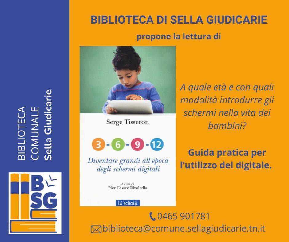 La Biblioteca di Sella Giudicarie propone la lettura de"3-6-9-12 Diventare grandi all'epoca degli schermi digitali"Secondo uno studio condotto da Telethon su bambini da 12 a 36 mesi l'esposizione agli schermi sta impoverendo fortemente il lessico e le abilità linguistiche infantili.https://www.repubblica.it/.../bambini_schermi_linguaggio.../Questa breve guida vi fornirà una regola ben precisa per sfruttare i benefici e minimizzare i rischi derivanti dall'utilizzo delle tecnologie digitali da parte dei nostri bambini.Buona lettura!#notiziedallabiblioteca